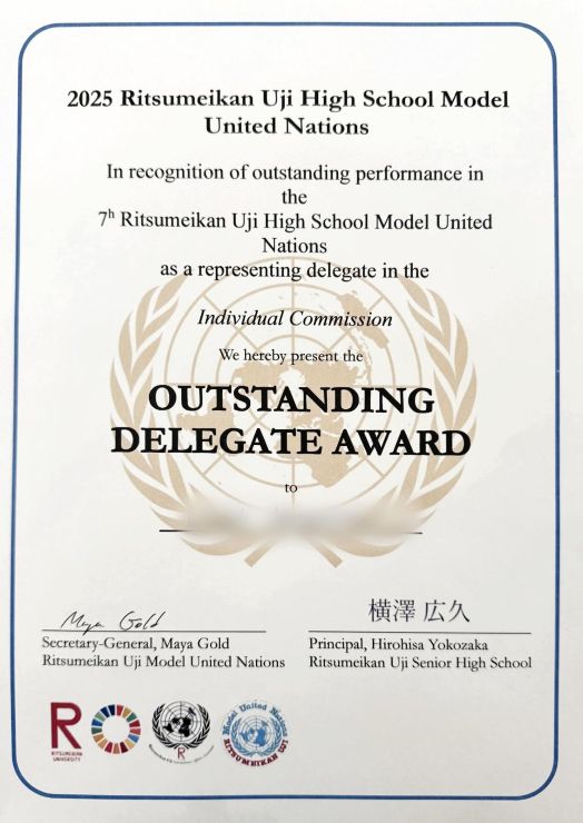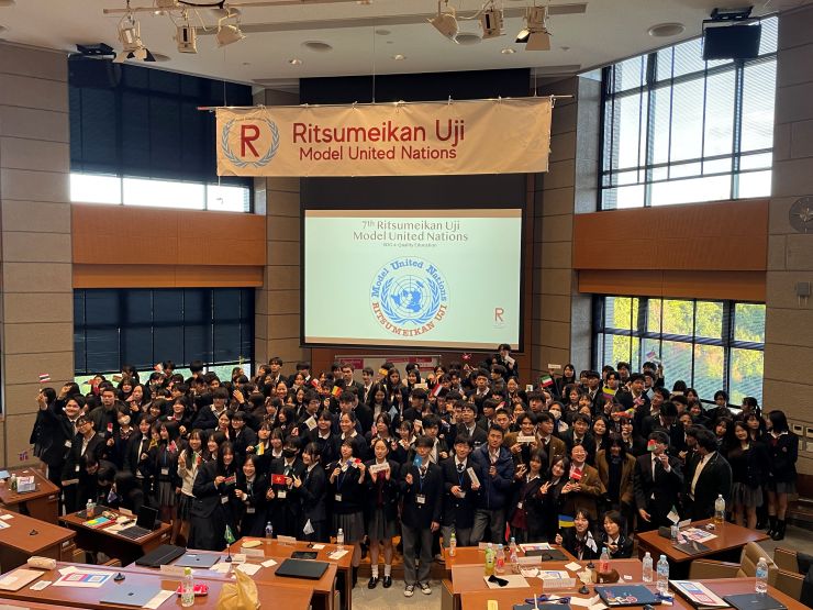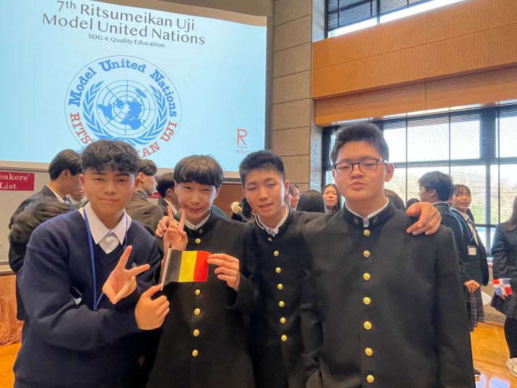 今年度も「立命館宇治中学校・高等学校模擬国連大会」に本コースの中高生9人が参加致しました。毎年、準備段階から活気に溢れ、情熱がほとばしる素晴らしい大会です。今年度は参加者数も最大となり、slackやオンラインの事前準備を経て、多様な背景を持つ中・高生が立命館大学BKCキャンパスにて一堂に介しました。参加校は、関西圏のみならず、九州・四国地方、また首都圏からも本校を含めて数校の参加がありました。