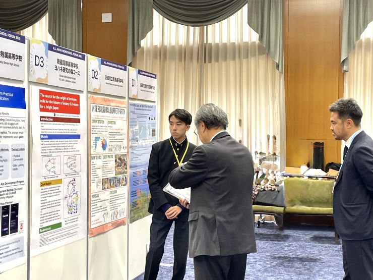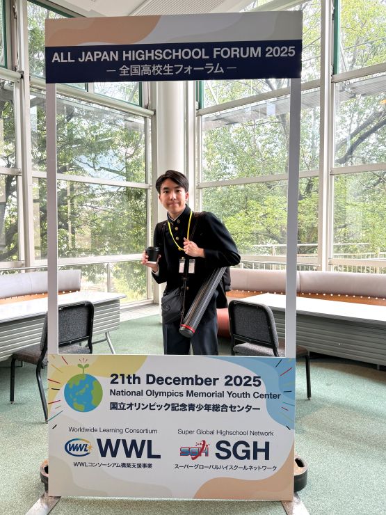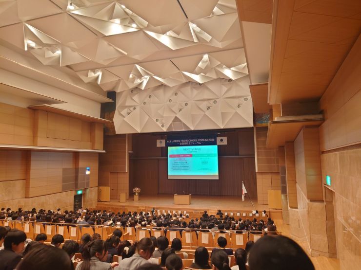 12月21日、国立オリンピック記念青少年総合センター(東京・代々木)にて、文部科学省主催「2025年度 全国高校生フォーラム(All Japan High School Forum 2025)」(https://b-wwl.jp/forum/2025forum/)が開催されました。本フォーラムは、WWL(ワールド・ワイド・ラーニング)やSGH(スーパー・グローバル・ハイスクール)の指定校等でグローバルな課題探究に取り組む高校生が一堂に会する場です。日頃の研究成果を英語で発表し、全国から集まった仲間とディスカッションを行う、非常に質の高い刺激的な催しです。