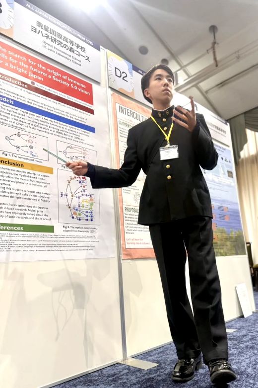 今回は「The search for the origin of immune cells for the future: a Society 5.0 vision for a bright Japan(免疫細胞の生い立ちを探る〜輝く日本の未来、Society 5.0の実現に向けて〜)」と題した研究を発表しました。高校生が取り組むには極めて難解なテーマでしたが、信念を持って研究に邁進した姿勢に対して、審査員の先生方からは有益なフィードバックとともに、今後の発展への期待を込めた温かい励ましを頂戴しました。